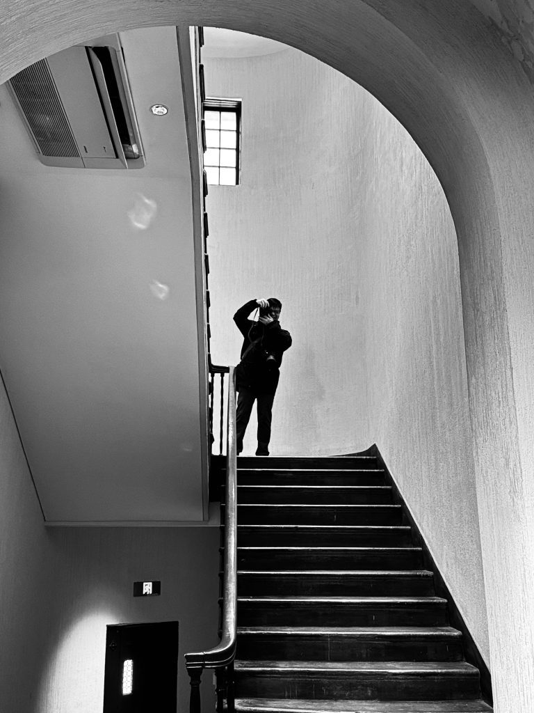 第二张照片则是我的朋友出现在楼梯转角处,他说想帮我拍照,我就在那一刹那抓拍了这张照片,有了人和动作,照片仿佛就有了生命和故事。
